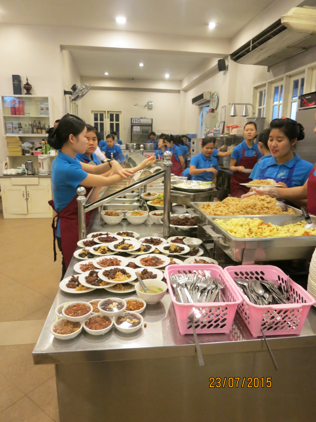 By the time he and I finished our tour of the pagodas, the hill, and the massive temple with its long walkway of stalls selling souvenirs (most of which were closed, thankfully!), we were both starving. So much so that my boatman uncharacteristically expressed his hunger. I solicitously apologised and offered to buy lunch and he quickly took us to a local roadside cafe about 5 minutes walking from the tourist site. He was incredibly accommodating, fussing over me and rousing the resto staff to take my order and make sure I had enough of what I ordered on my plate. 20150725_135605
